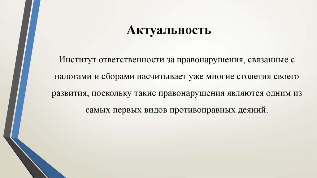 АктуальностьИнститут ответственности за правонарушения, связанные с