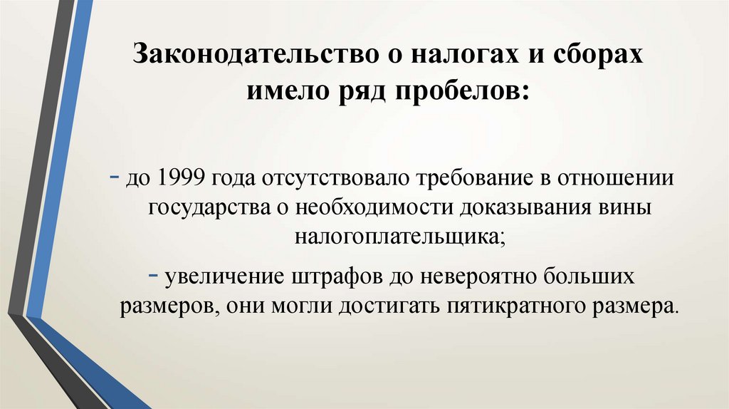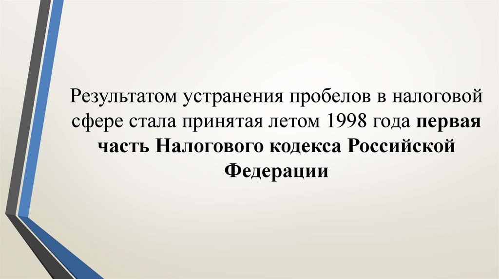 Результатом устранения пробелов в налоговойсфере стала принятая летом 1998 года первая