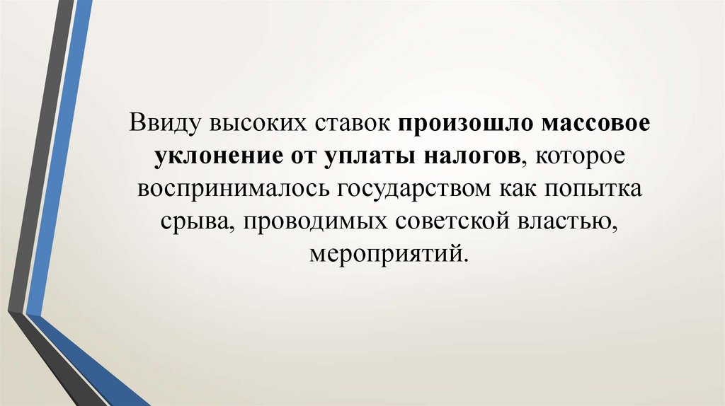 Ввиду высоких ставок произошло массовоеуклонение от уплаты налогов, которое