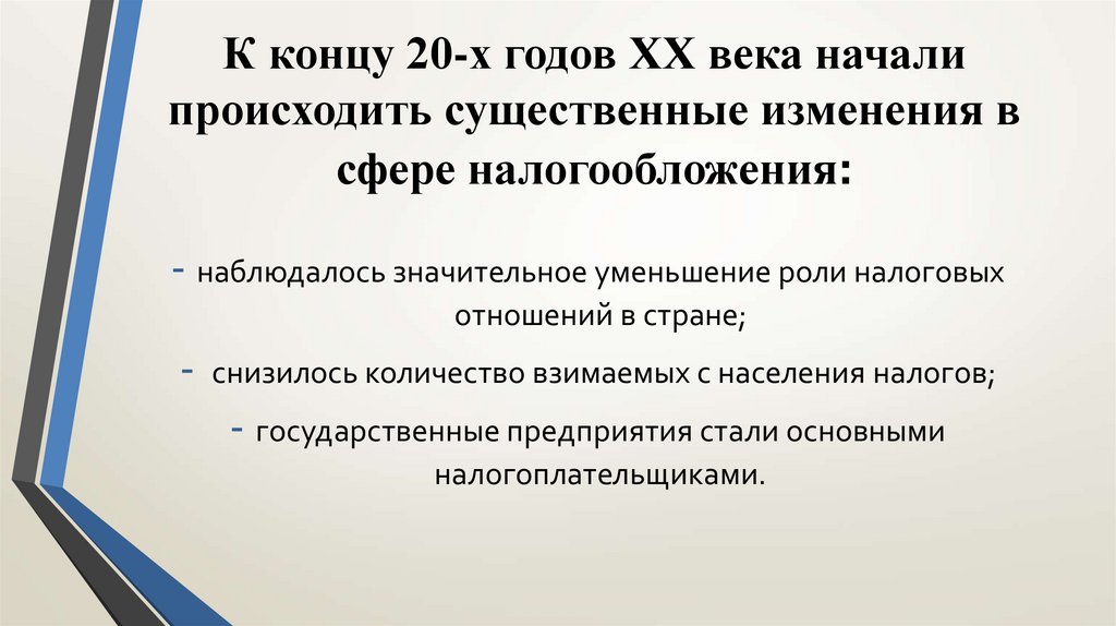 К концу 20-х годов ХХ века началипроисходить существенные изменения в