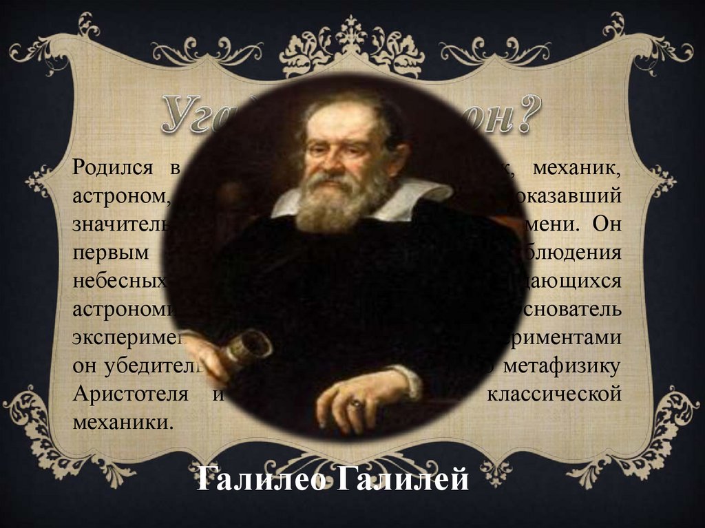 Родился в 1564 году в Италии. Физик, механик,астроном, философ и математик, оказавший