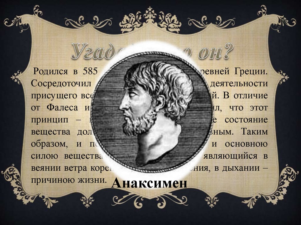 от Фалеса и Анаксимандра, он находил, что этот