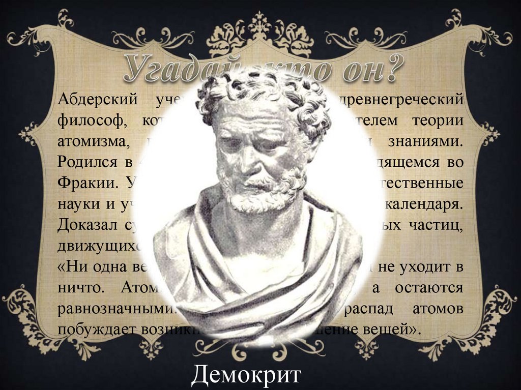 Абдерский ученый знаменитый древнегреческийфилософ, который считается основателем теории