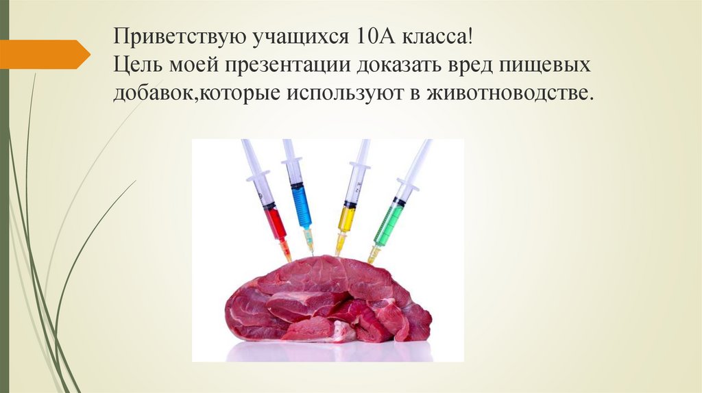 Приветствую учащихся 10А класса!Цель моей презентации доказать вред пищевых