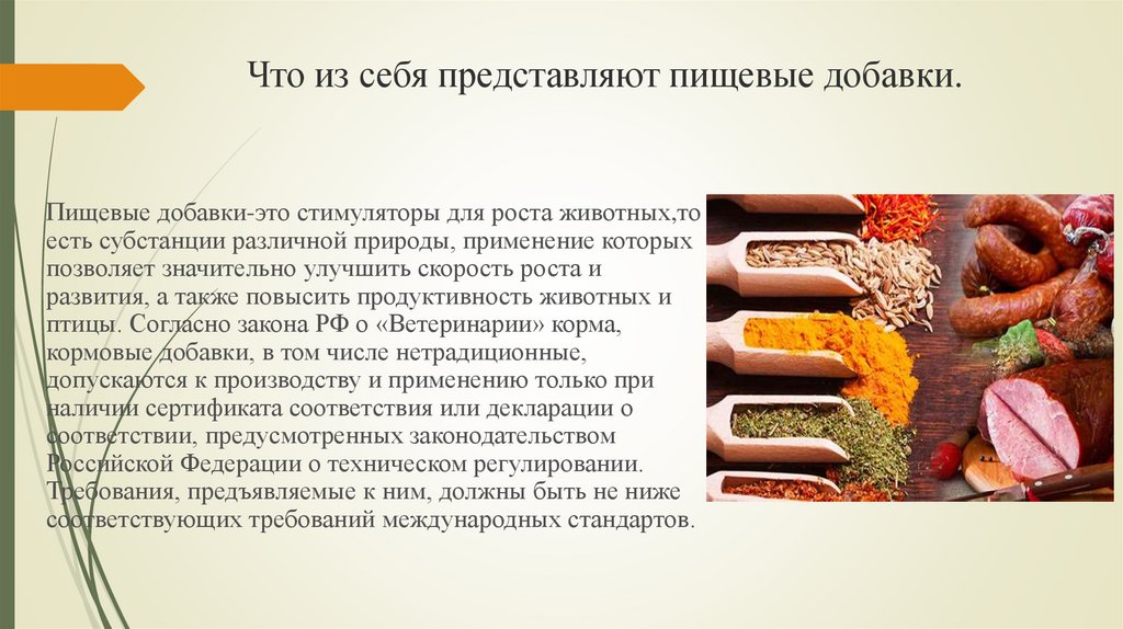 Что из себя представляют пищевые добавки.Пищевые добавки-это стимуляторы для роста животных,то