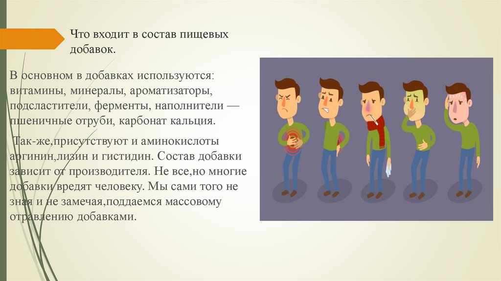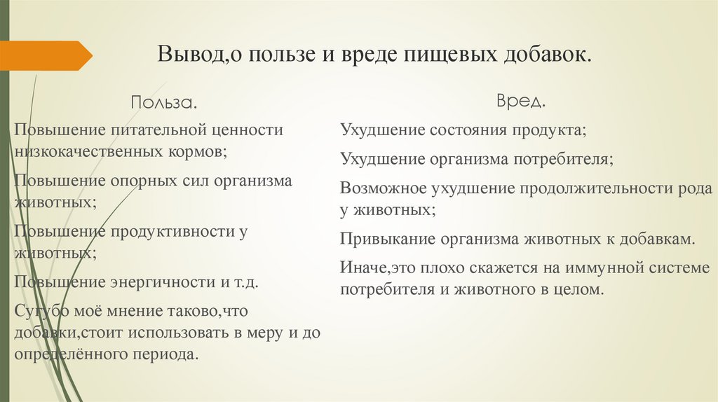Вывод,о пользе и вреде пищевых добавок.Вред.