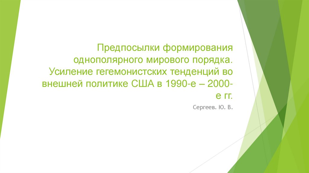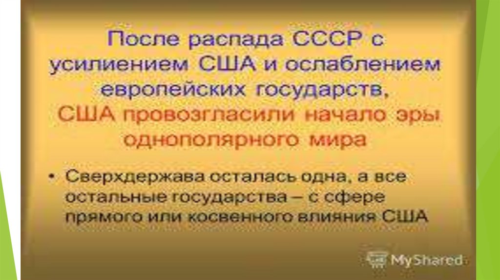 Предпосылки формирования однополярного мирового порядка