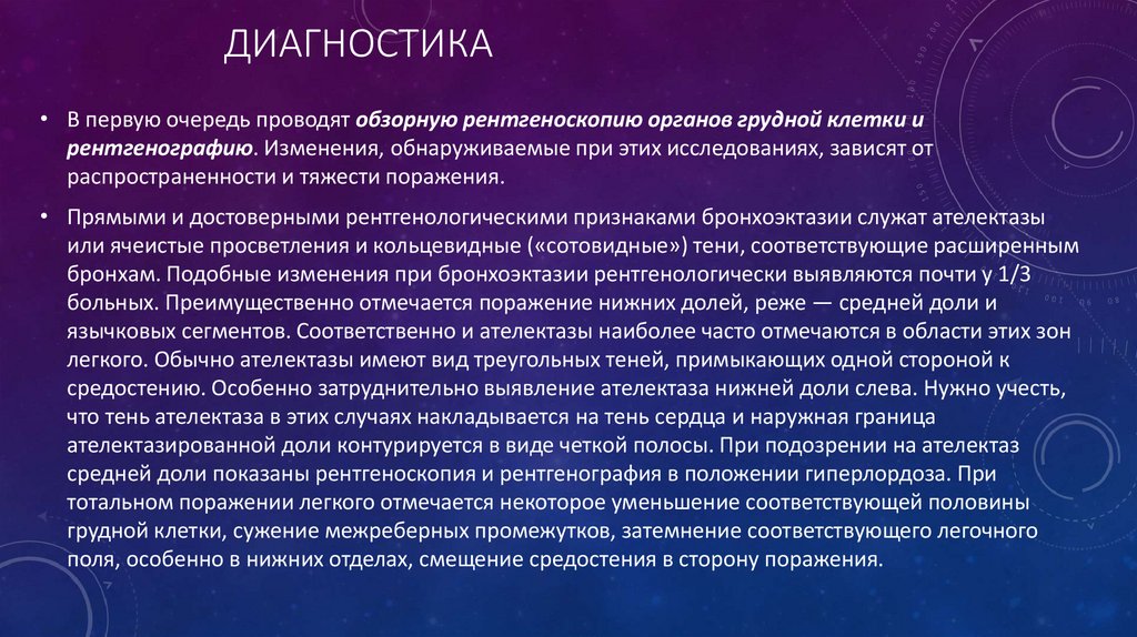 • Прямыми и достоверными рентгенологическими признаками бронхоэктазии служат ателектазы