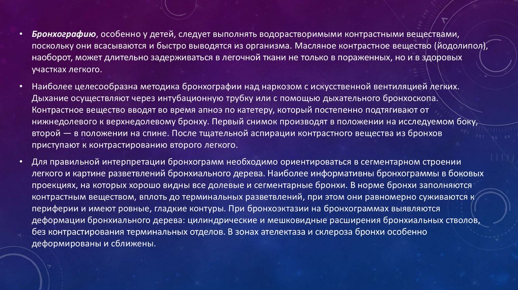 • Наиболее целесообразна методика бронхографии над наркозом с искусственной вентиляцией легких.