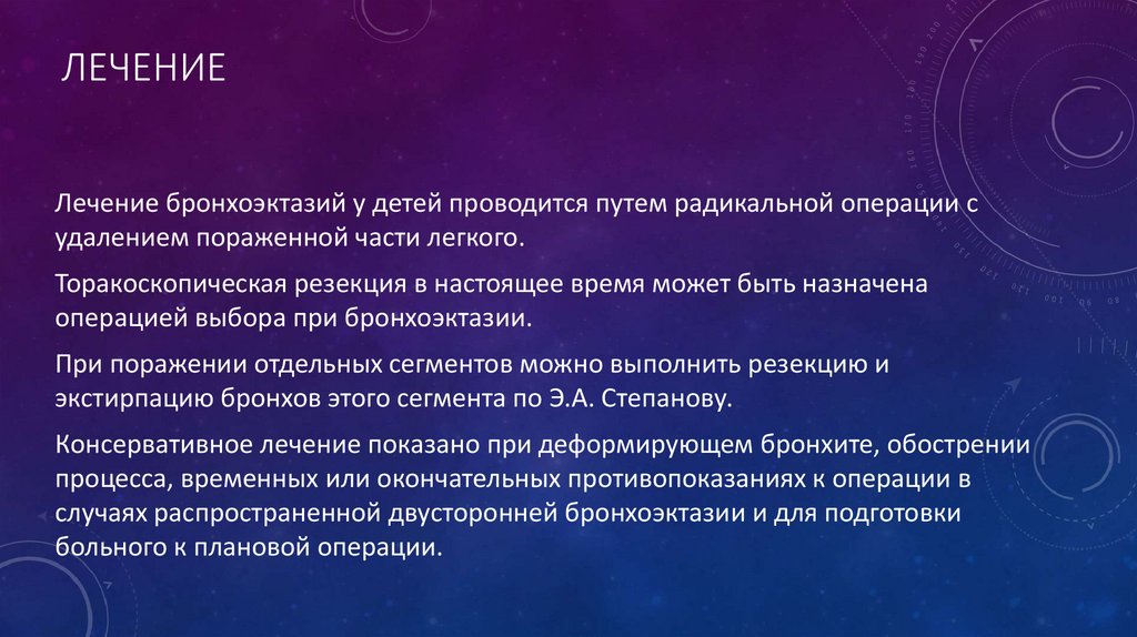 ЛЕЧЕНИЕЛечение бронхоэктазий у детей проводится путем радикальной операции с