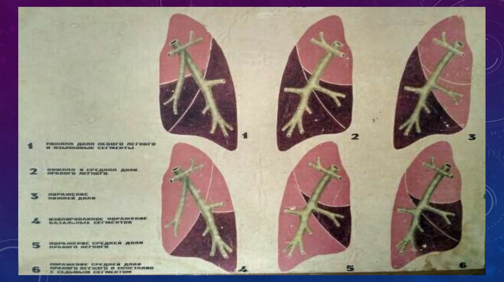 больных. Преимущественно отмечается поражение нижних долей, реже — средней доли и