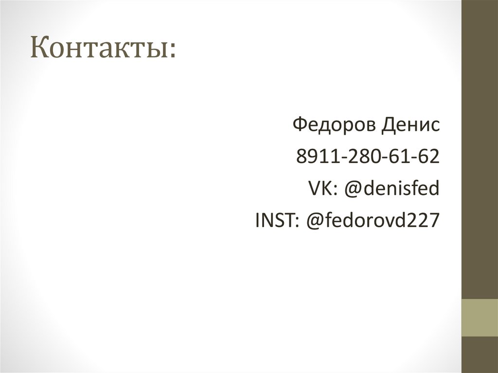 Контакты:Федоров Денис