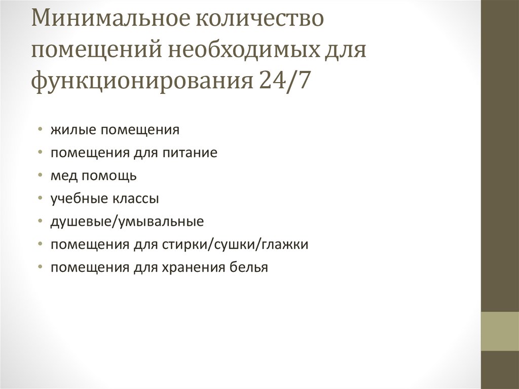 Минимальное количествопомещений необходимых для