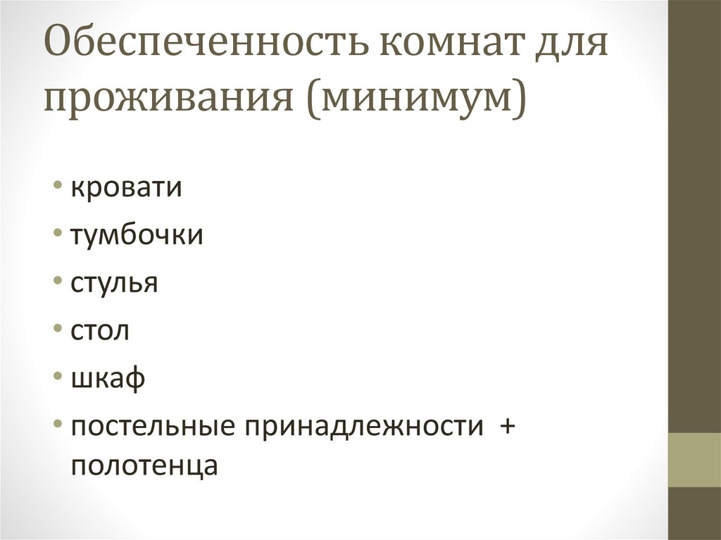 Обеспеченность комнат дляпроживания (минимум)
