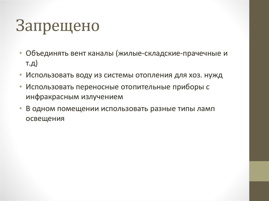 Запрещено• Объединять вент каналы (жилые-складские-прачечные и