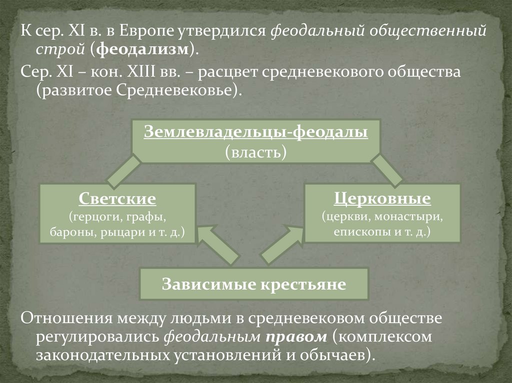 К сер. XI в. в Европе утвердился феодальный общественныйстрой (феодализм).