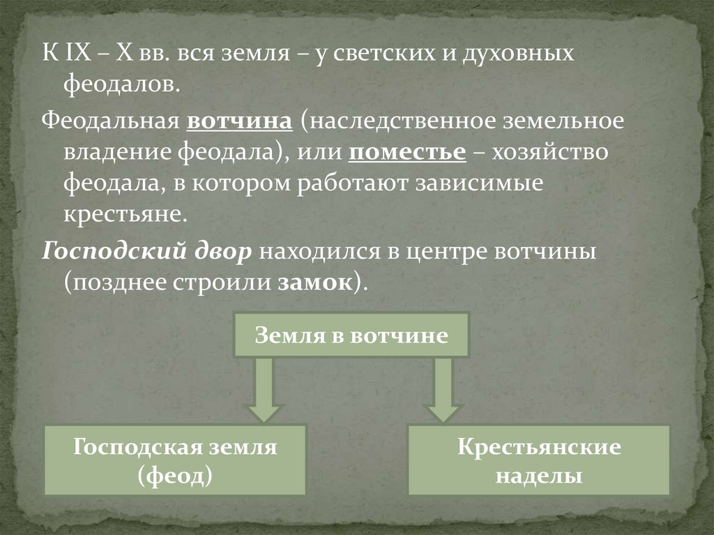 К IX – X вв. вся земля – у светских и духовныхфеодалов.