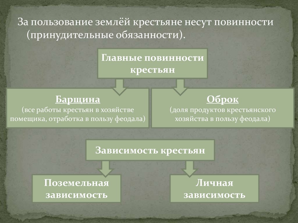 За пользование землёй крестьяне несут повинности(принудительные обязанности).