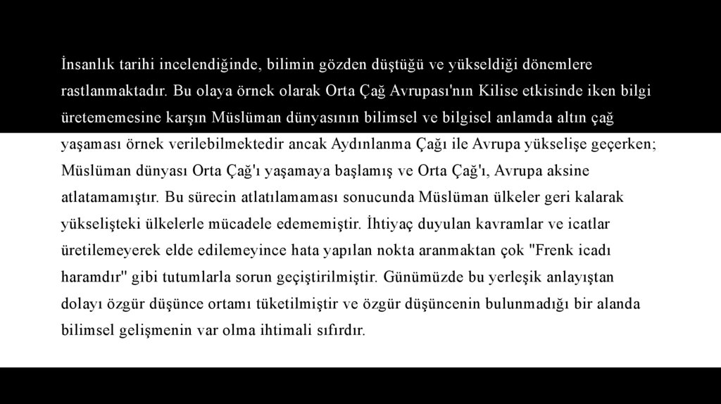 dolayı özgür düşünce ortamı tüketilmiştir ve özgür düşüncenin bulunmadığı bir alanda