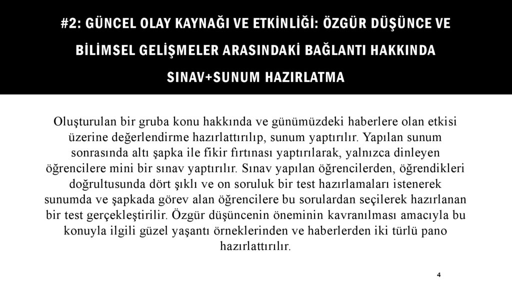 sonrasında altı şapka ile fikir fırtınası yaptırılarak, yalnızca dinleyen
