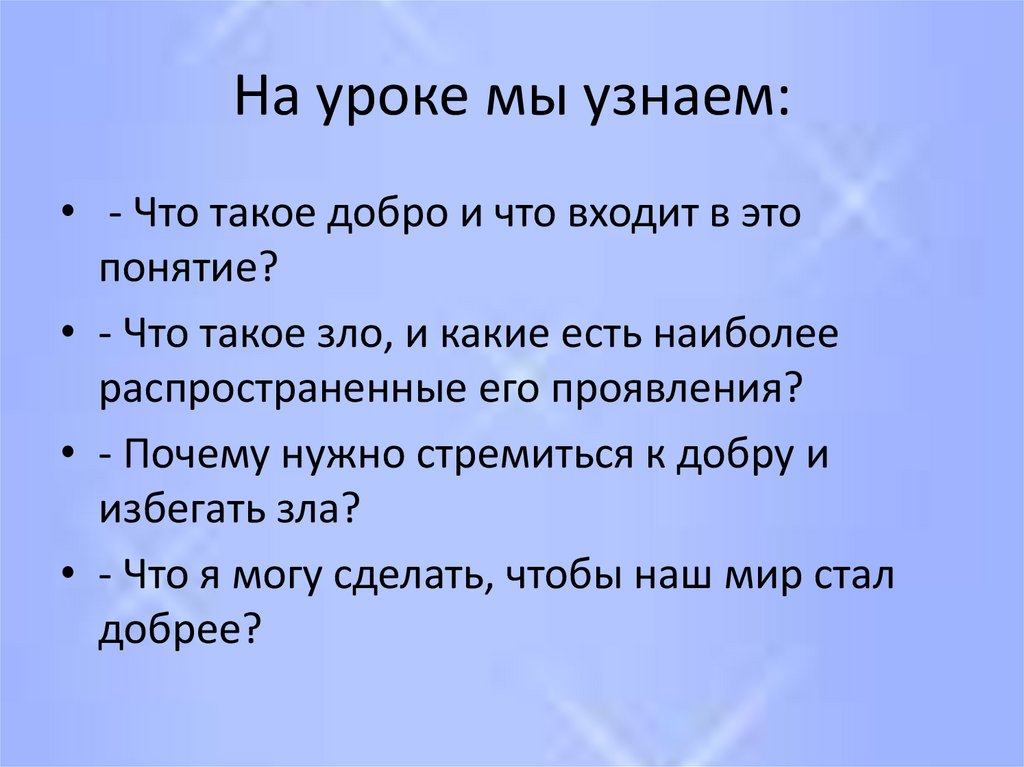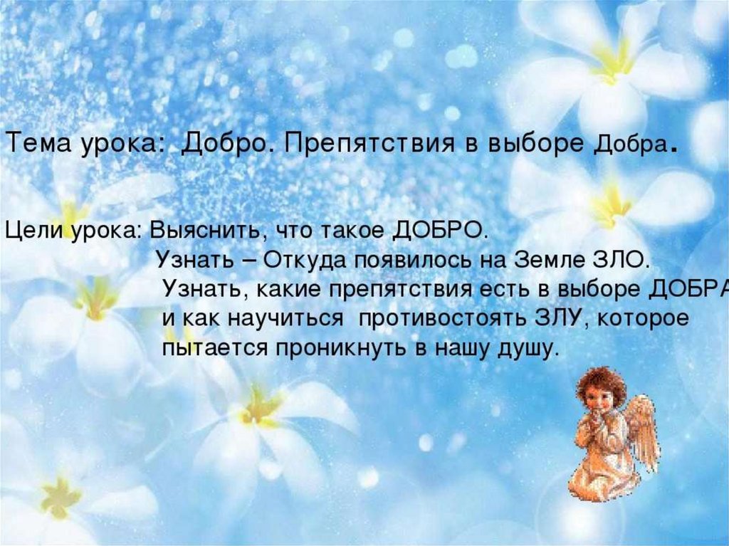 На уроке мы узнаем:• - Что такое добро и что входит в это