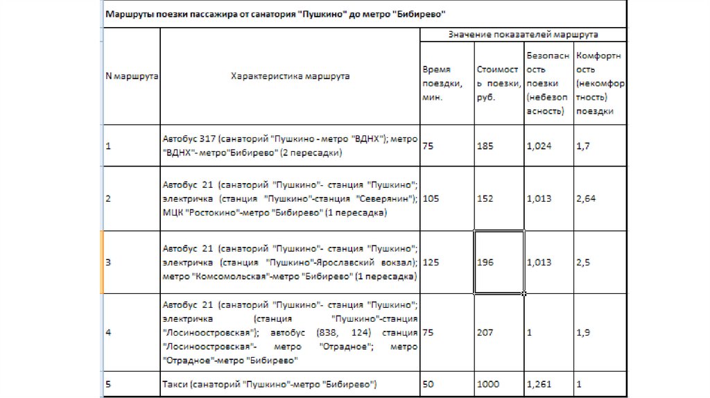 Пример задачи выбора маршрута