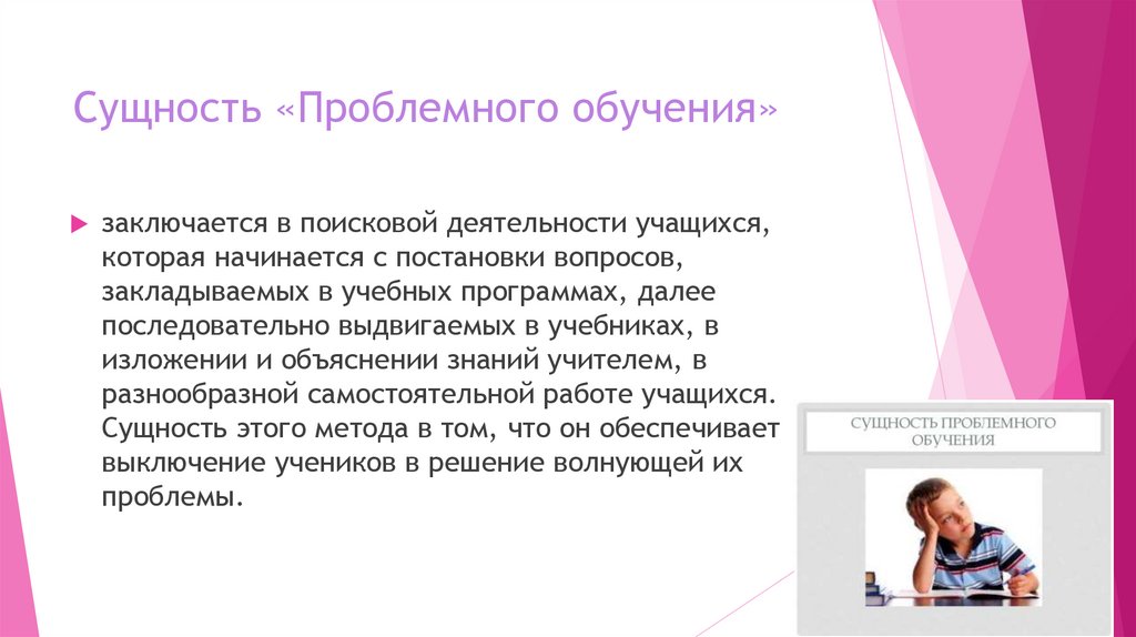 Сущность «Проблемного обучения»заключается в поисковой деятельности учащихся,