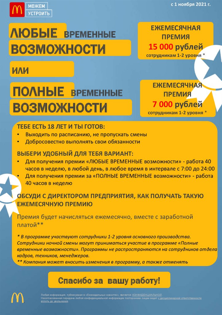 Для получения премии за «ПОЛНЫЕ ВРЕМЕННЫЕ возможности» - работа