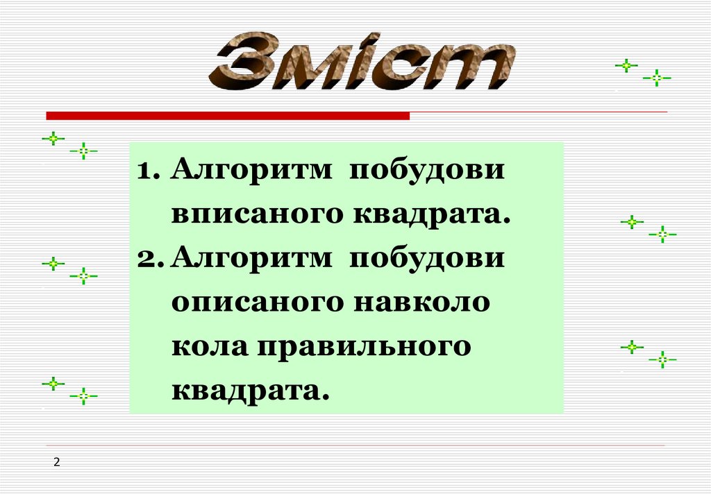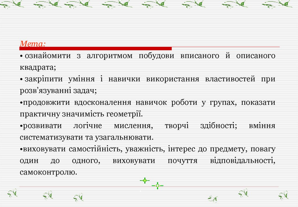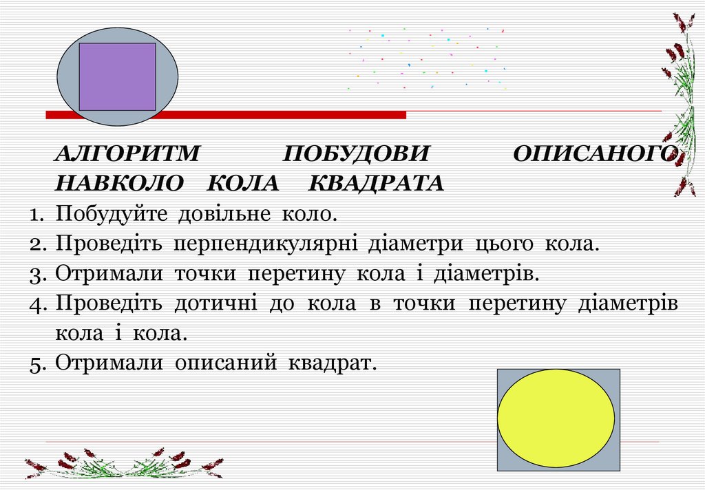 Мета:• ознайомити з алгоритмом побудови вписаного й описаного