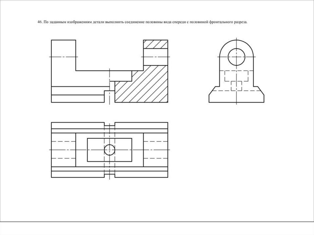 29. По заданным изображениям детали выполнить соединение половинывида спереди с половиной фронтального разреза.