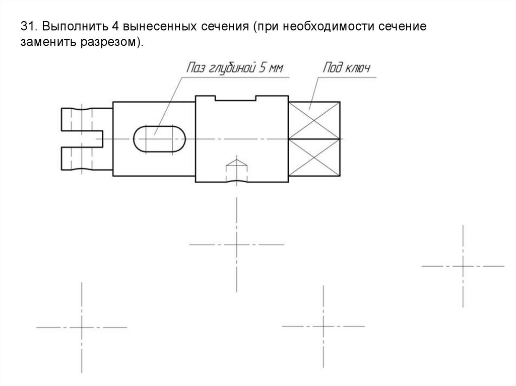 31. Выполнить 4 вынесенных сечения (при необходимости сечениезаменить разрезом).