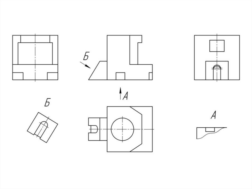 27. По заданным изображениям детали достроить виды слева и справа,а также необходимые местный и дополнительный виды.