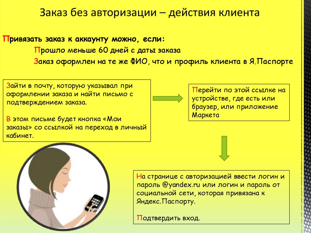Заказ без авторизации – действия клиентаПривязать заказ к аккаунту можно, если: