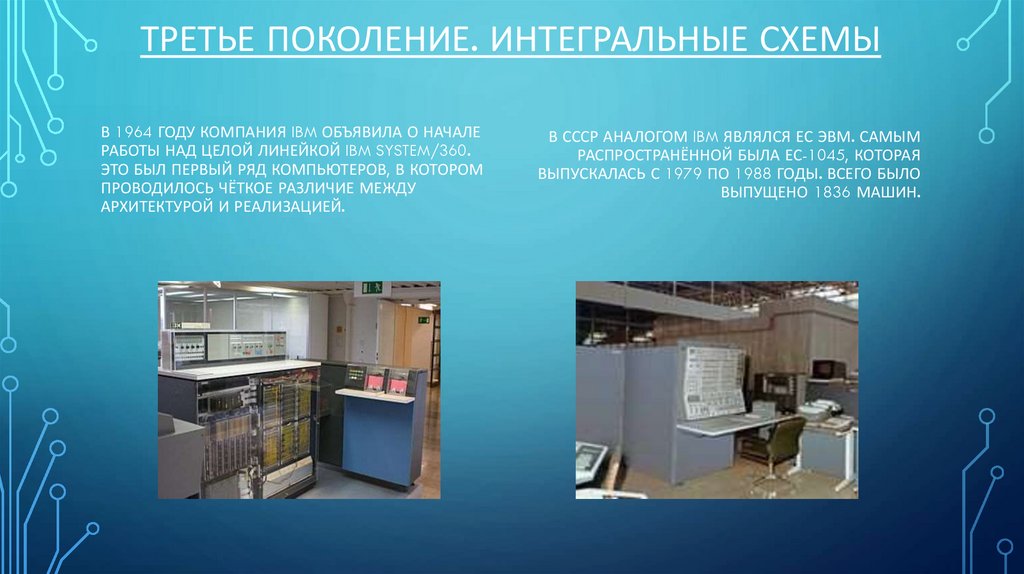 ТРЕТЬЕ ПОКОЛЕНИЕ. ИНТЕГРАЛЬНЫЕ СХЕМЫВ 1964 ГОДУ КОМПАНИЯ IBM ОБЪЯВИЛА О НАЧАЛЕ