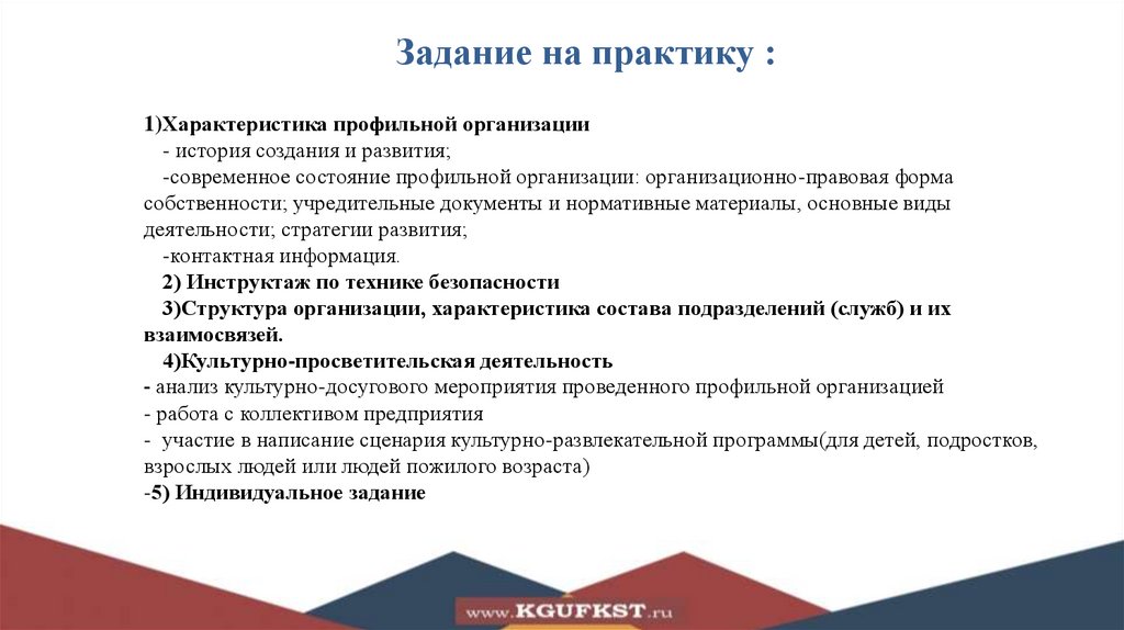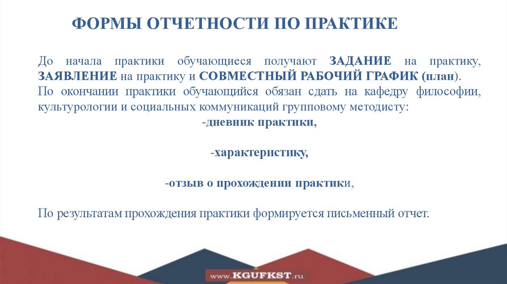 ФОРМЫ ОТЧЕТНОСТИ ПО ПРАКТИКЕДо начала практики обучающиеся получают ЗАДАНИЕ на практику,