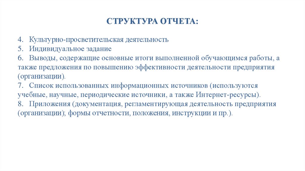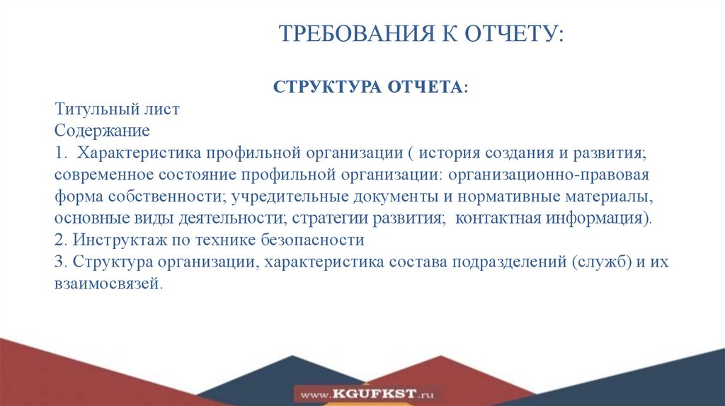 ТРЕБОВАНИЯ К ОТЧЕТУ:СТРУКТУРА ОТЧЕТА: