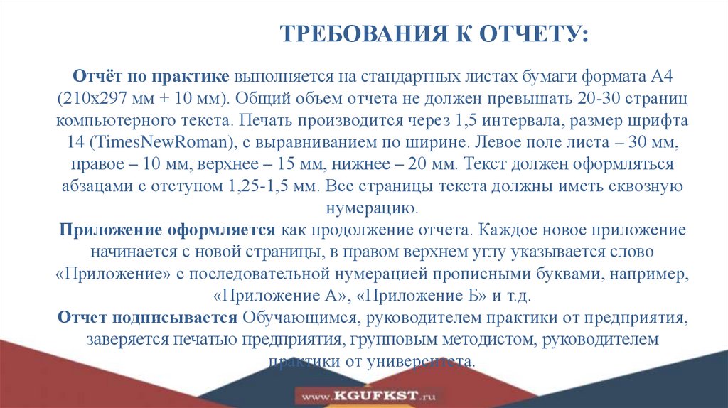 ТРЕБОВАНИЯ К ОТЧЕТУ:Отчёт по практике выполняется на стандартных листах бумаги формата А4