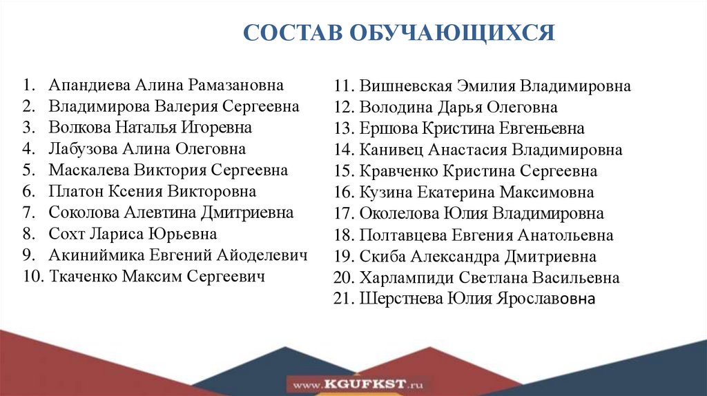СОСТАВ ОБУЧАЮЩИХСЯ1. Апандиева Алина Рамазановна