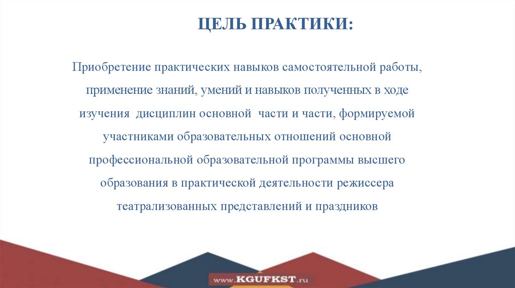 ЦЕЛЬ ПРАКТИКИ:Приобретение практических навыков самостоятельной работы,