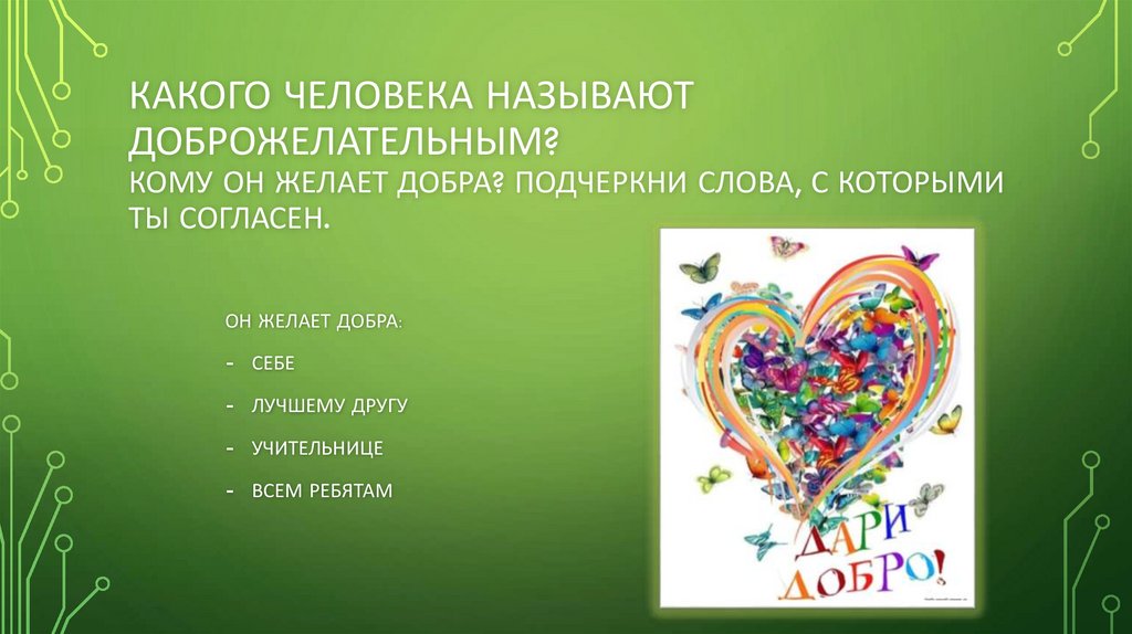 КАКОГО ЧЕЛОВЕКА НАЗЫВАЮТДОБРОЖЕЛАТЕЛЬНЫМ?