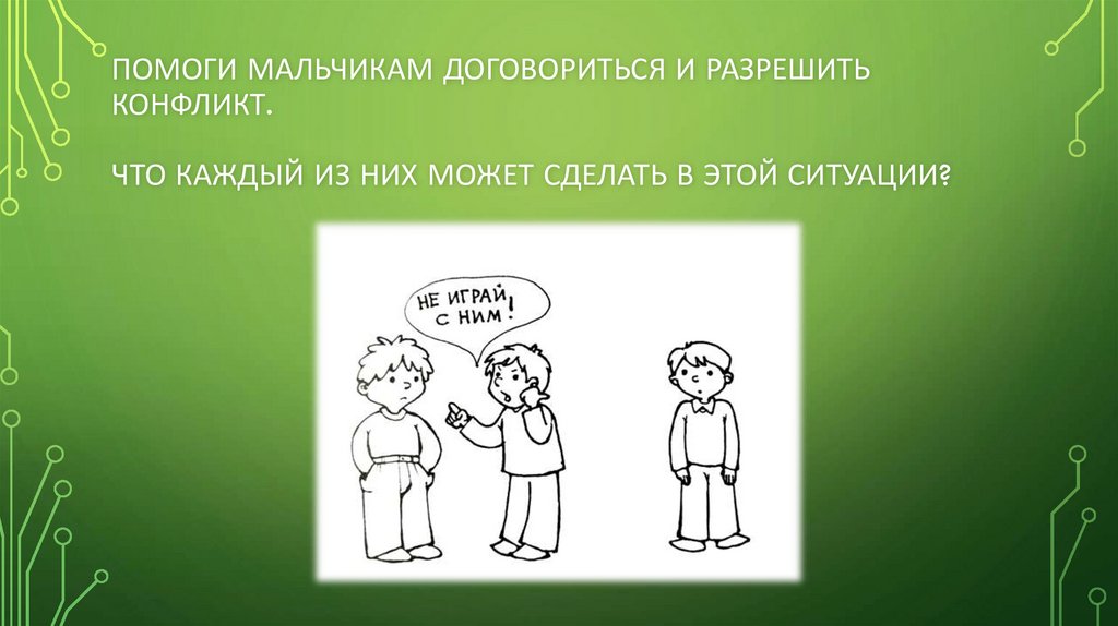 ПОМОГИ МАЛЬЧИКАМ ДОГОВОРИТЬСЯ И РАЗРЕШИТЬКОНФЛИКТ.