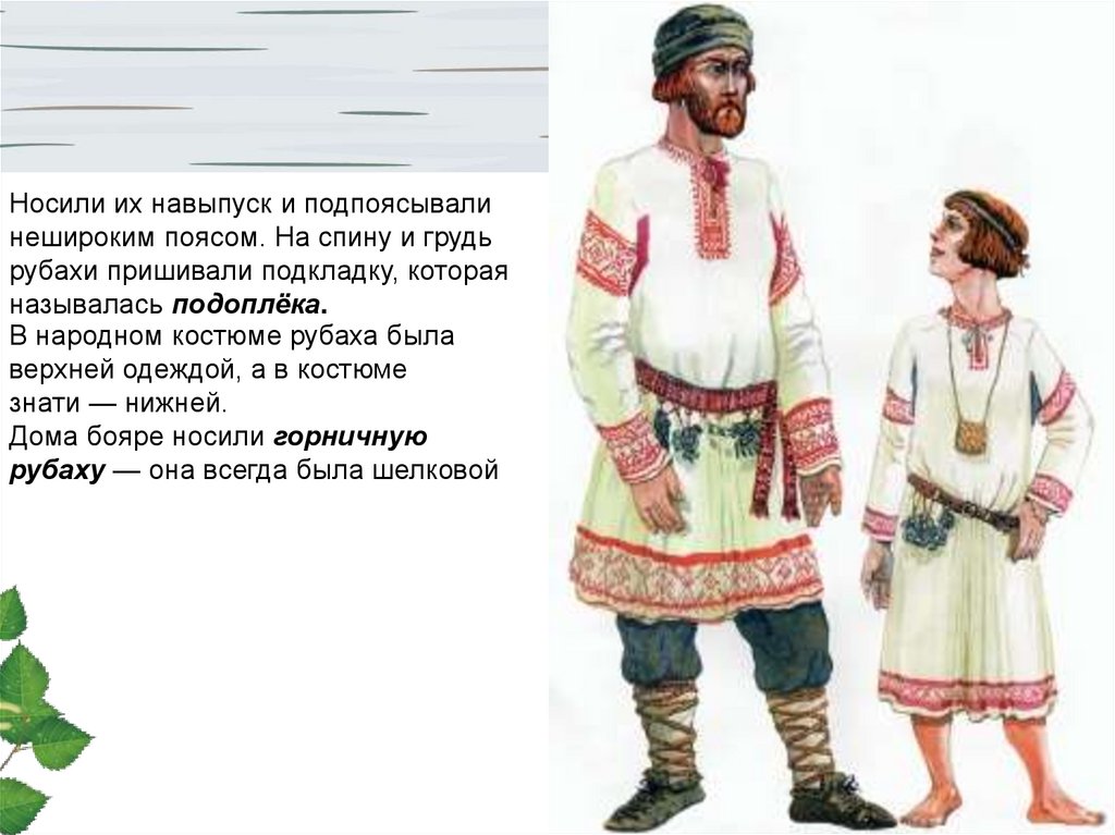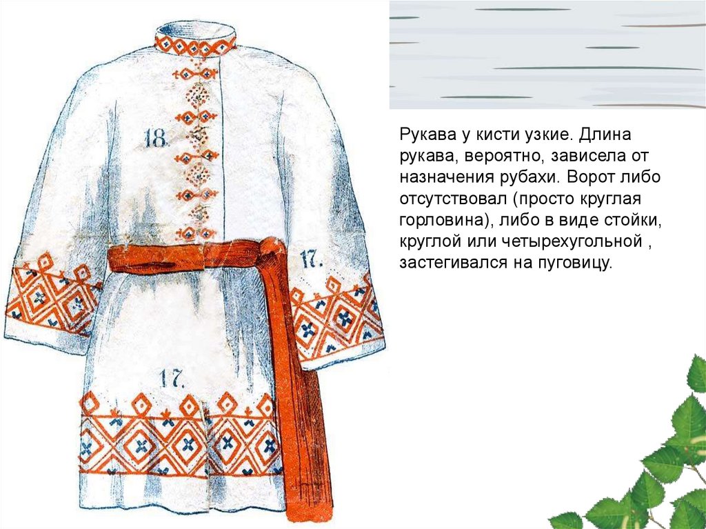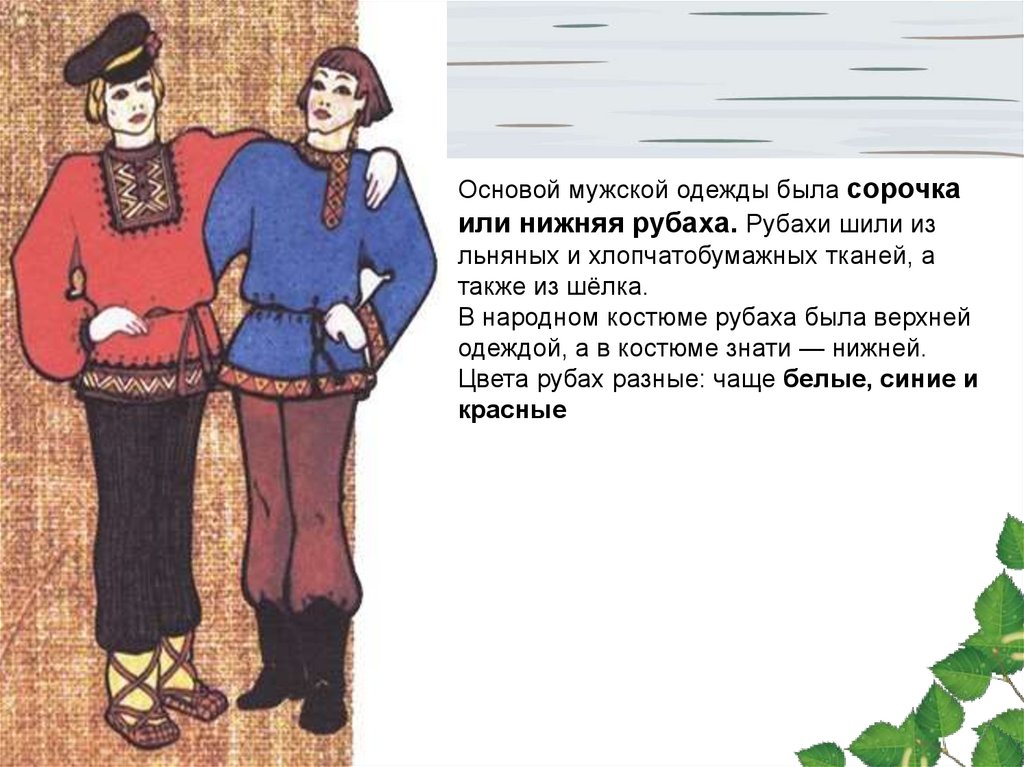 Основой мужской одежды была сорочкаили нижняя рубаха. Рубахи шили из