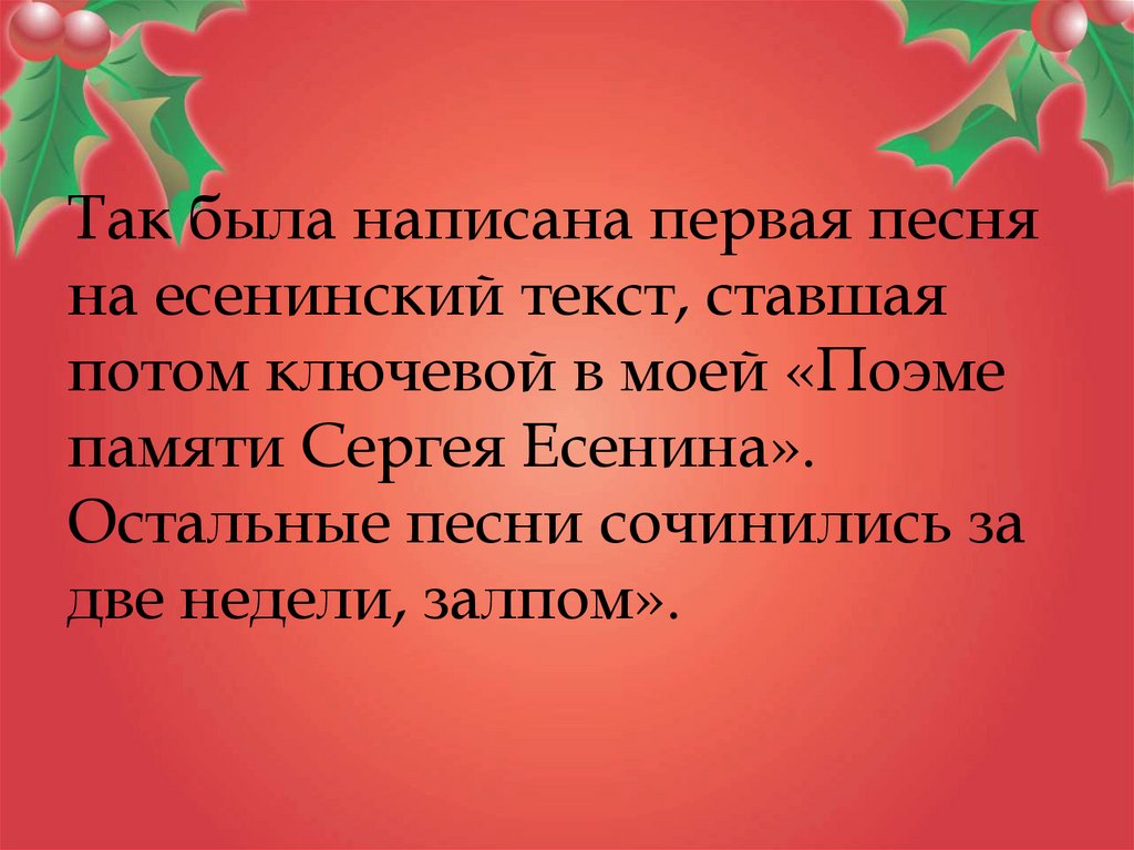 Так была написана первая песняна есенинский текст, ставшая