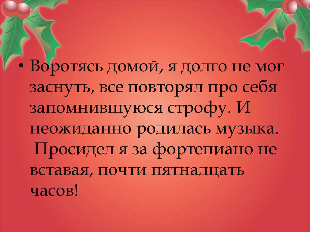 • Воротясь домой, я долго не могзаснуть, все повторял про себя