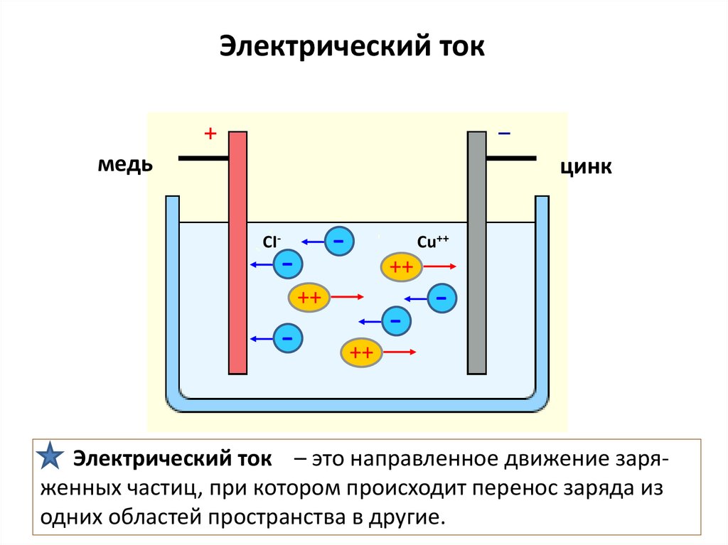 Электрический ток – это направленное движение заряженных частиц, при котором происходит перенос заряда из