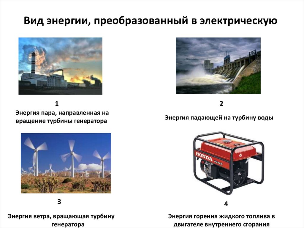Вид энергии, преобразованный в электрическую1