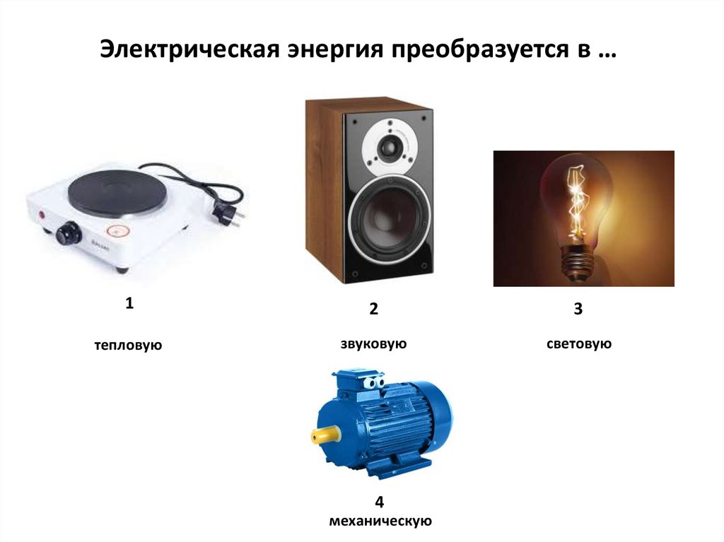 Электрическая энергия преобразуется в …Электрическая энергия преобразуется в …