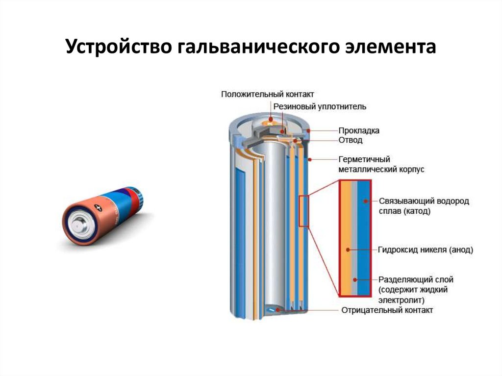 Устройство гальванического элемента8.