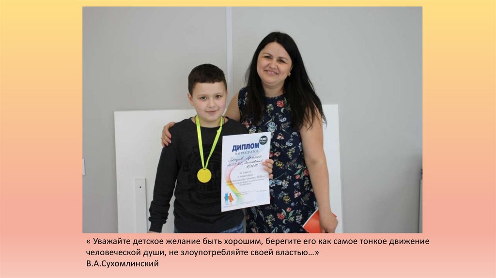 « Уважайте детское желание быть хорошим, берегите его как самое тонкое движениечеловеческой души, не злоупотребляйте своей властью…»