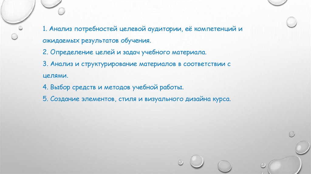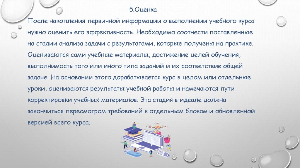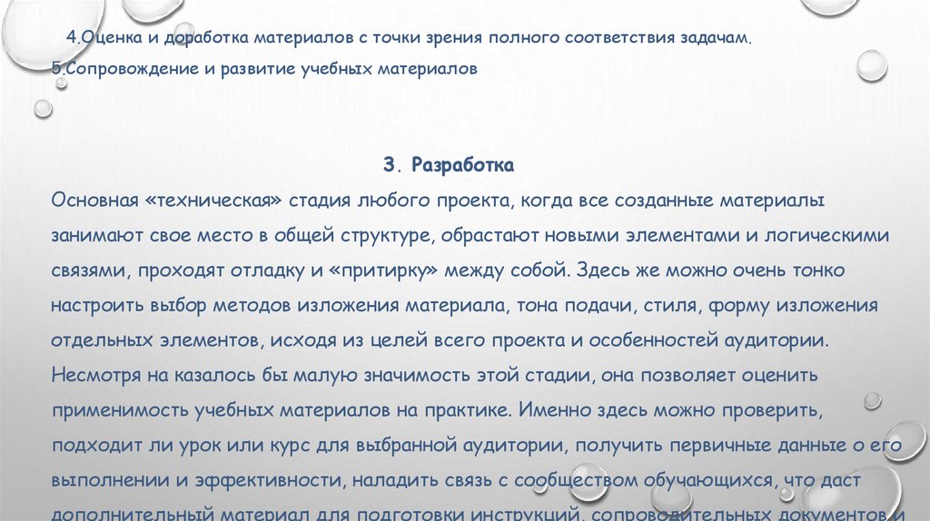 3 4.Оценка и доработка материалов с точки зрения полного соответствия задачам.5.Сопровождение и развитие учебных материалов